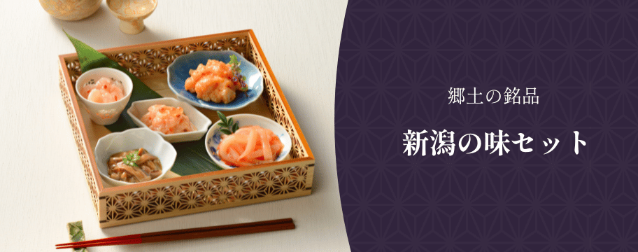 これぞ「新潟の味」セット。新潟郷土の漬物や、三幸に伝わる伝統の技術と製法で仕上げた珍味など、お土産にも最適な新潟の味をお気軽に楽しんでいただけるセット商品一覧です。