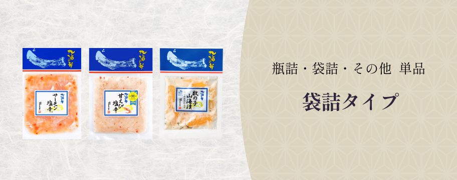 袋詰の単品商品一覧です。味見に最適!食べきりサイズの袋詰商品。瓶詰だと量が多いという方はぜひ袋詰商品でお試しください。