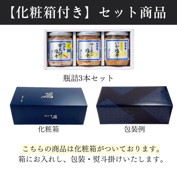 【日本ギフト大賞受賞】塩辛三昧(サーモン塩辛・甘えび塩辛・新潟仕込みいか塩辛)B-19